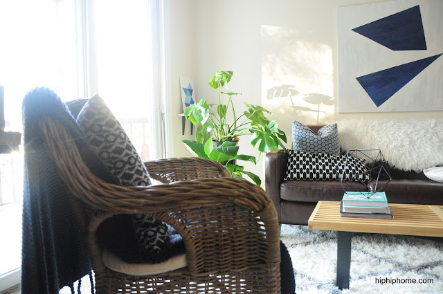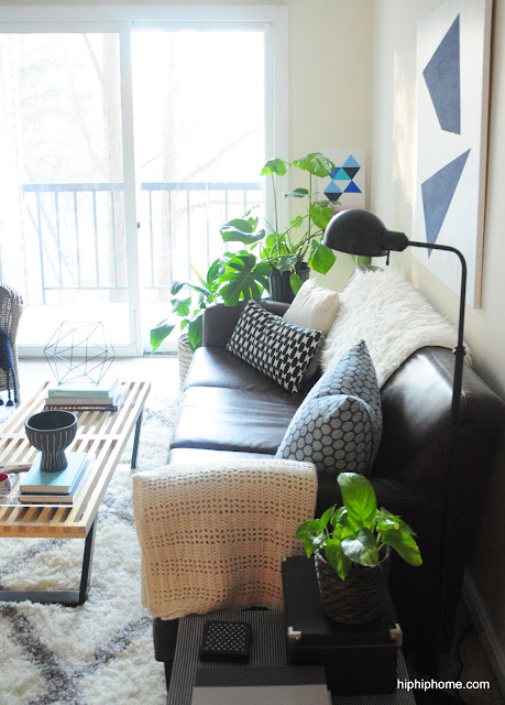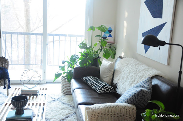 The toughest part of the whole process, was making that art above the couch. I know it is not everyone's cup of tea (being so graphic) , but after repeatedly failing at creating something abstract and remotely decent looking, I almost gave up.