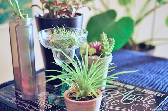 Just a few potted plants and some air plants - and my green tablescape was complete.